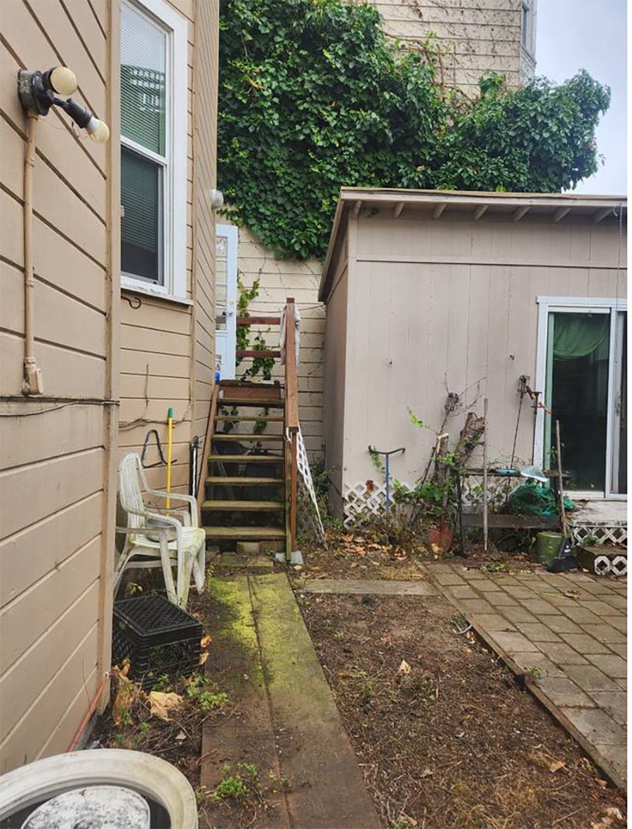 The remaining photos just show the backyard, which the renter is promised access to, along with that "shed" — which, has a sliding glass door? Could it also be a living space?