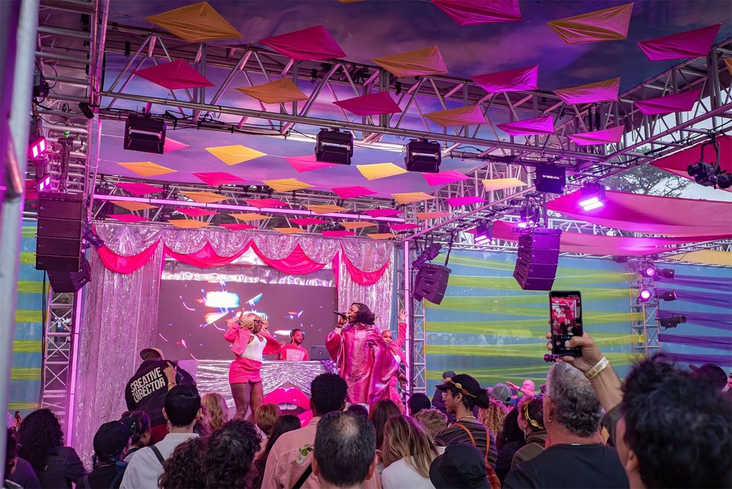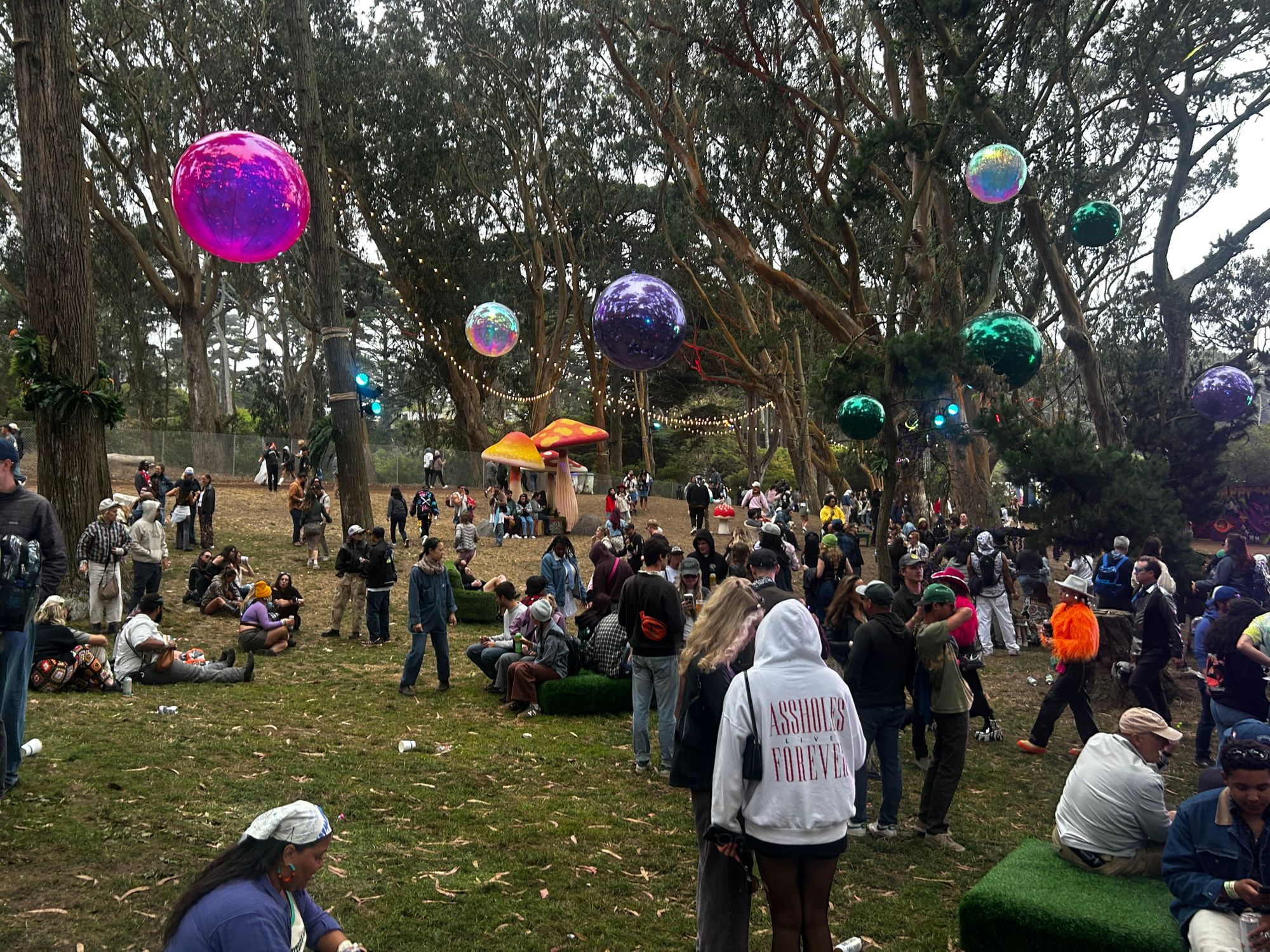 A new feature this year is the Duboce Triangle Stage, nestled away up in the Wine Lands area. It’s certainly more of a chill spot (or a "come down from that mushroom chocolate” spot) with grass-covered couches and legit decent furniture, and a stage hosting open mic sessions and mellow DJ sets.