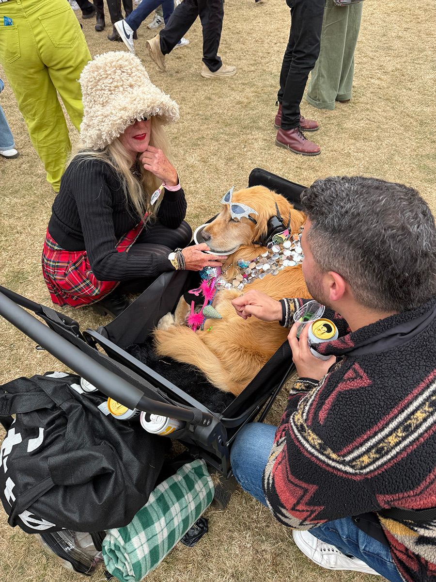Instagram-famous therapy dog Brixton also made an appearance, being carted around the festival by his caregiver. We recently learned the news that Brixton is being treated for lymphoma, and he may not have been in the best shape for festival-going.