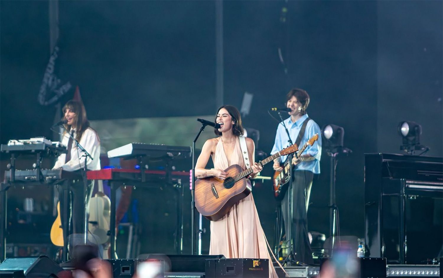 Young rising pop star Gracie Abrams took the main stage after Ludacris, wearing a peach-colored, floor-length gown and delighting fans with her hits including "Let It Happen," "Death Wish," and "That's So True," closing out her set with "Close to You."