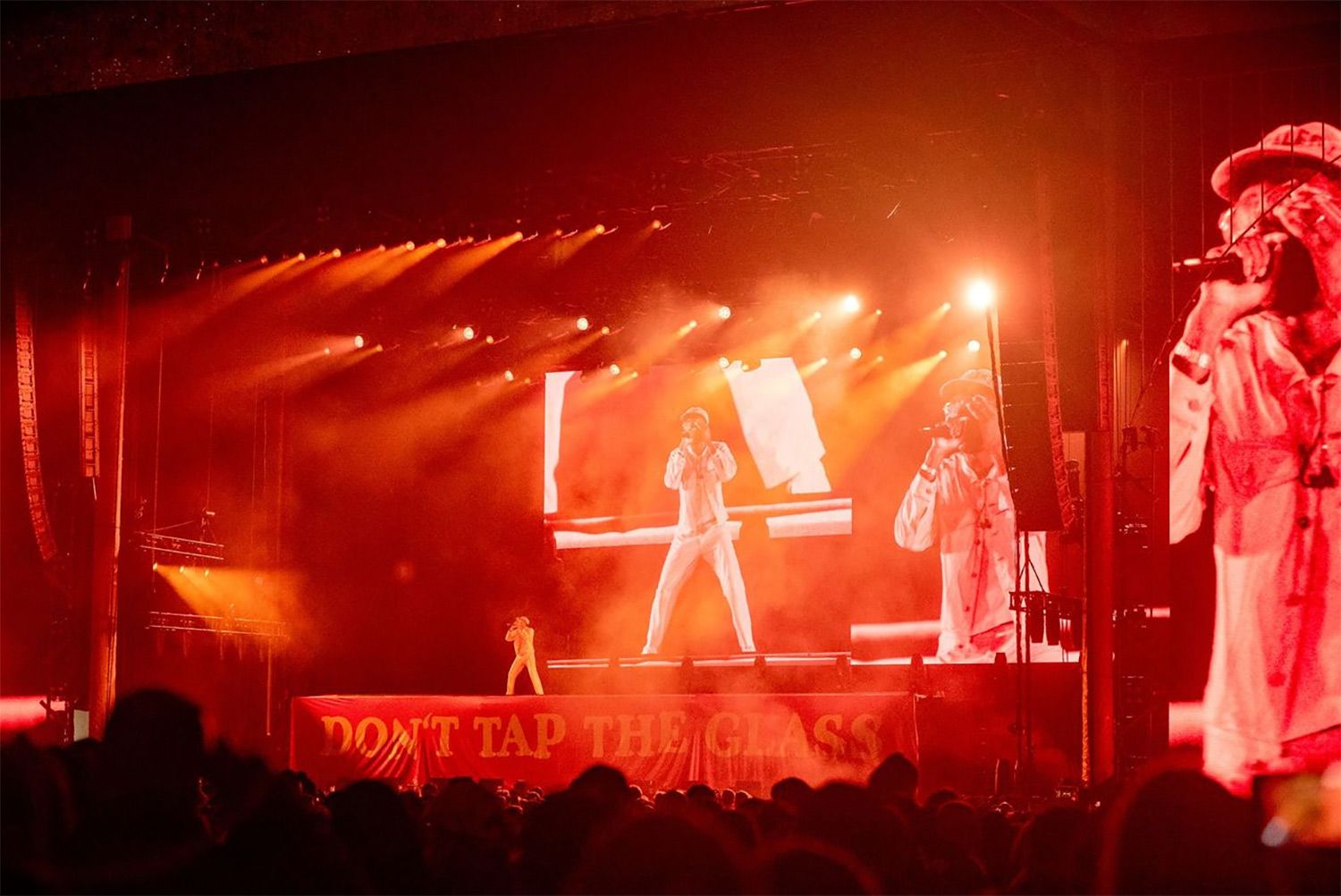 Tyler kicked off the set with two tracks from that album, “Big Poe” and “Sugar on My Tongue,” launching into an hour-plus, 20-song performance. There were a number of shooting fireballs and “spark drop” pyrotechnics added to the mix, though the visual appeal of this one was mostly simple, solid single-color schemes that created luminous, radiant fog effects. And this being San Francisco, fans were particularly thrilled to hear him tear into the tracks “EARFQUAKE” and “Sucka Free.”