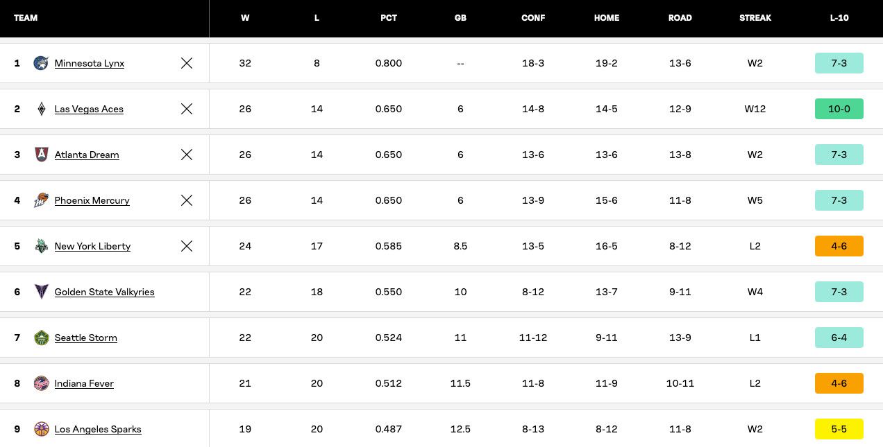 The Chronicle points out that the Valkyries’ “magic number” to make the playoffs is now two. That is, two more wins gets them in automatically, with four regular season games remaining. But they could clinch as early as tomorrow night at home if they get some help, after last night's win.