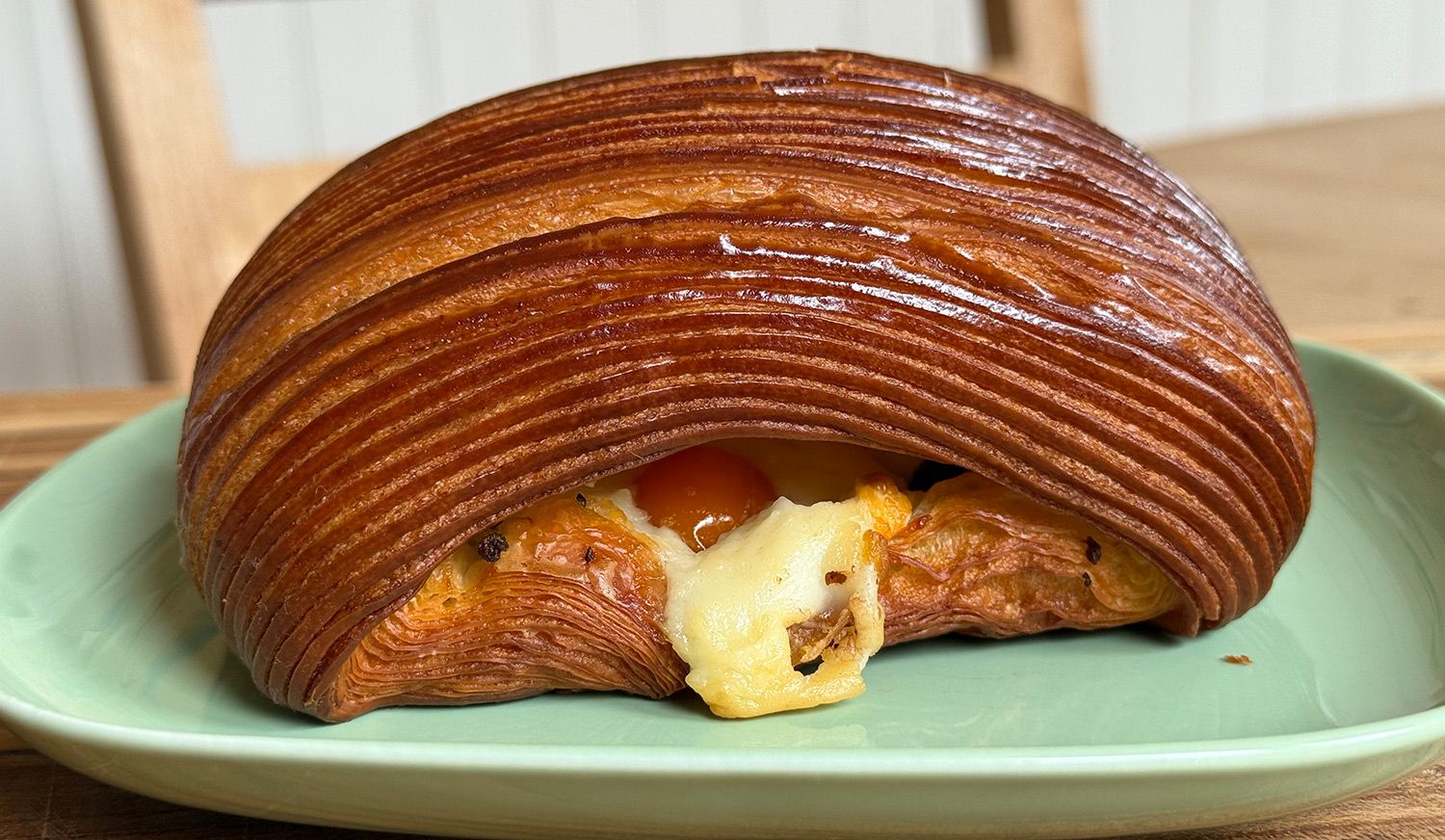 There is also a savory twist on a classic kouign amman, this one with everything seasoning and scallion cream cheese mousse. And a striking laminated cube — which also seemed destined to sell out early, because of its sheer photo-worthiness — filled with passionfruit and white chocolate-vanilla crémeux.