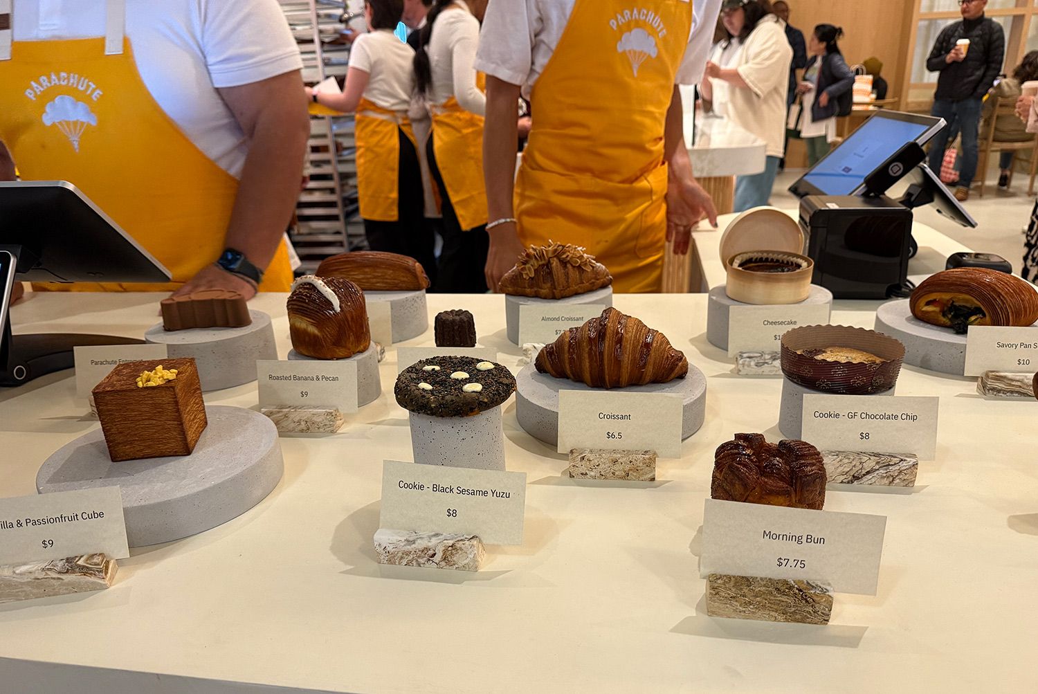 There was a line Thursday morning, shortly after Parachute's 8 am opening, that at one point snaked outside the northern end of the Ferry Building, and those Parachute Chocolate Entremets were sold out within forty minutes or so.