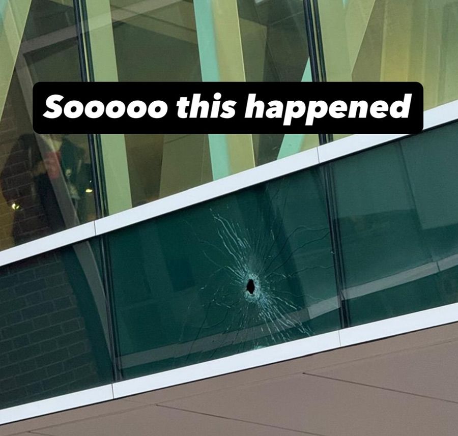 Update: A friend posted this image to social media of a bullet hole in the exterior glass of SF General.
