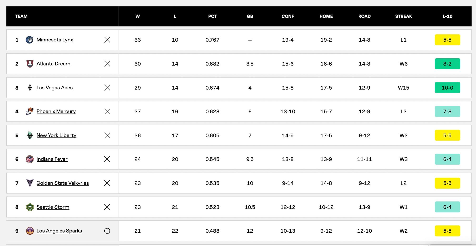 Let’s look at the standings. The Valkyries currently hold the seventh seed, but they can’t stay there. If they win, they’re the sixth seed, if they lose, they’re the eighth seed. So they’re going to play either the Number One seed or the Number Three seed, and obviously, you’d rather play against Number Three in the playoffs instead of Number One.