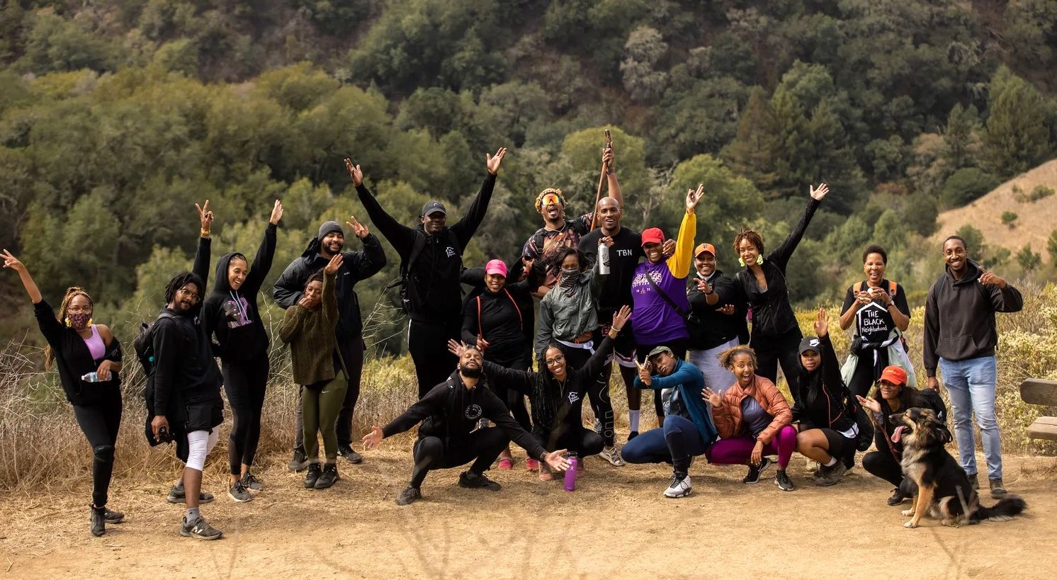 The Black Neighborhood leads monthly Mental Health Hikes through East Bay trails — redwoods, creek crossings, ridgelines — pausing before the first climb as co-founder Cory Elliott urges everyone to “let go of everything from yesterday and look up.”