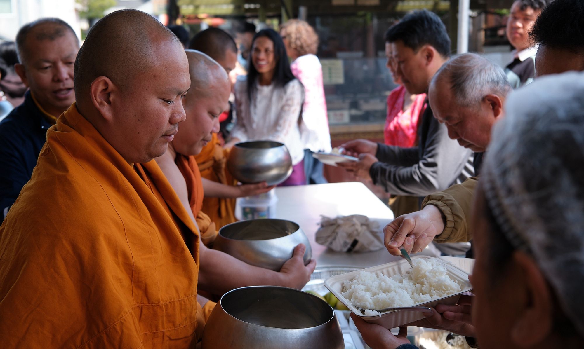 Every Sunday, the Berkeley Thai Temple draws hundreds for its famous brunch, a community tradition running since 1980. Behind the food — Thai noodle soup, curries, and Kanom Krok — are volunteers who start work long before the doors open, from monks prepping ingredients to chefs, retired cooks, and families keeping the meal running.