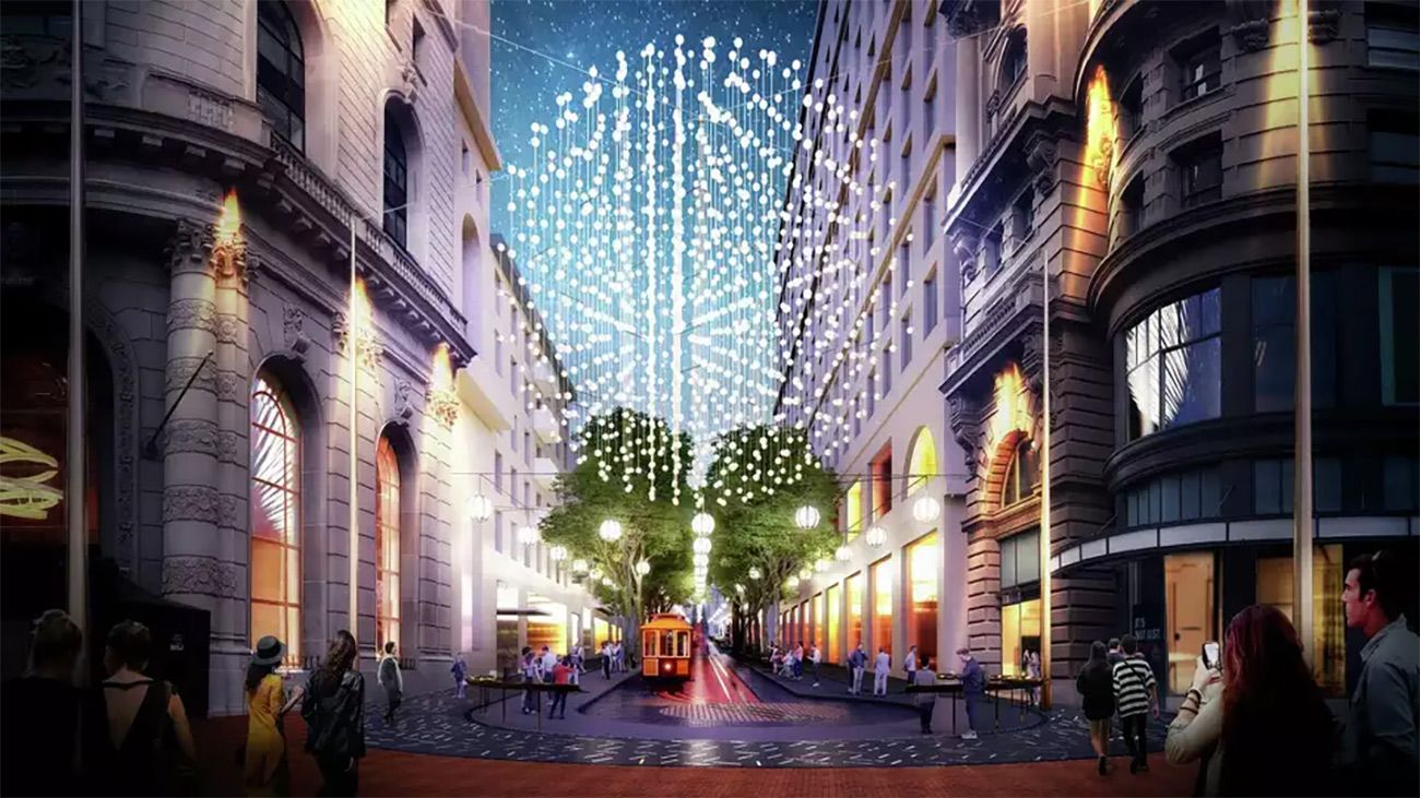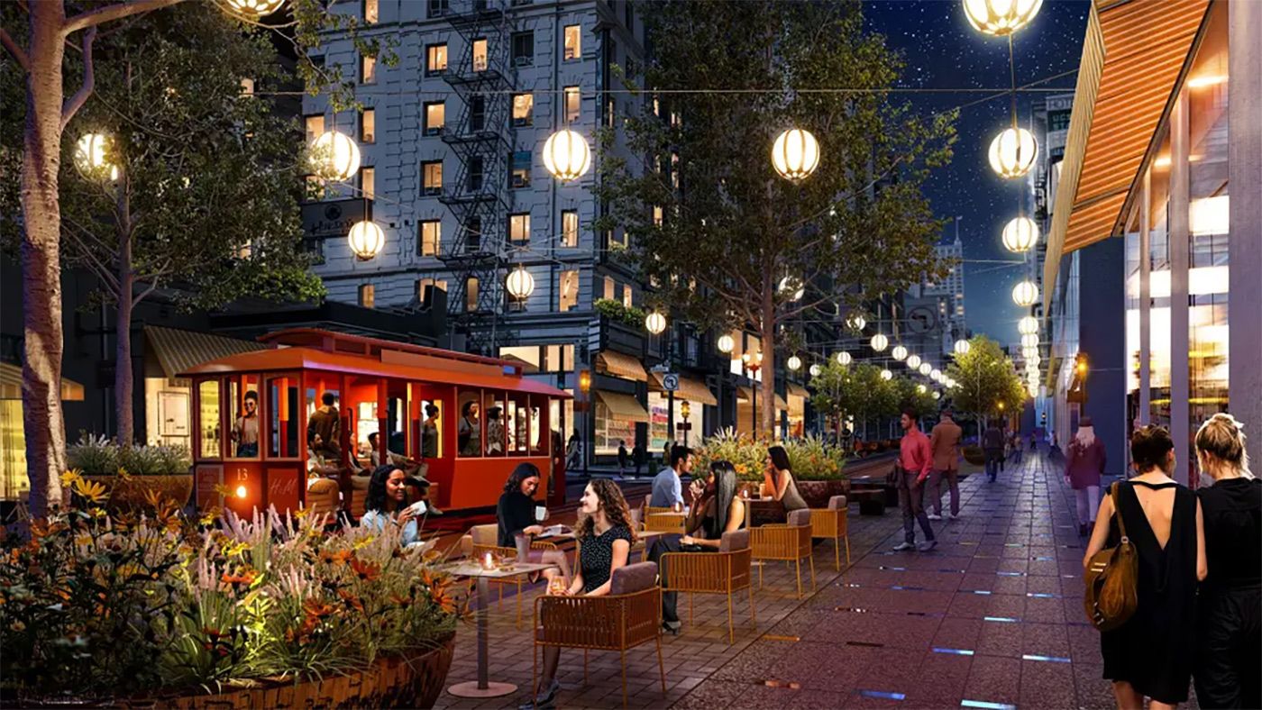 The three blocks of Powell Street between the cable-car turnaround and Union Square are set to see some light installations, cafe tables, new paving and more under a new proposed revamp.