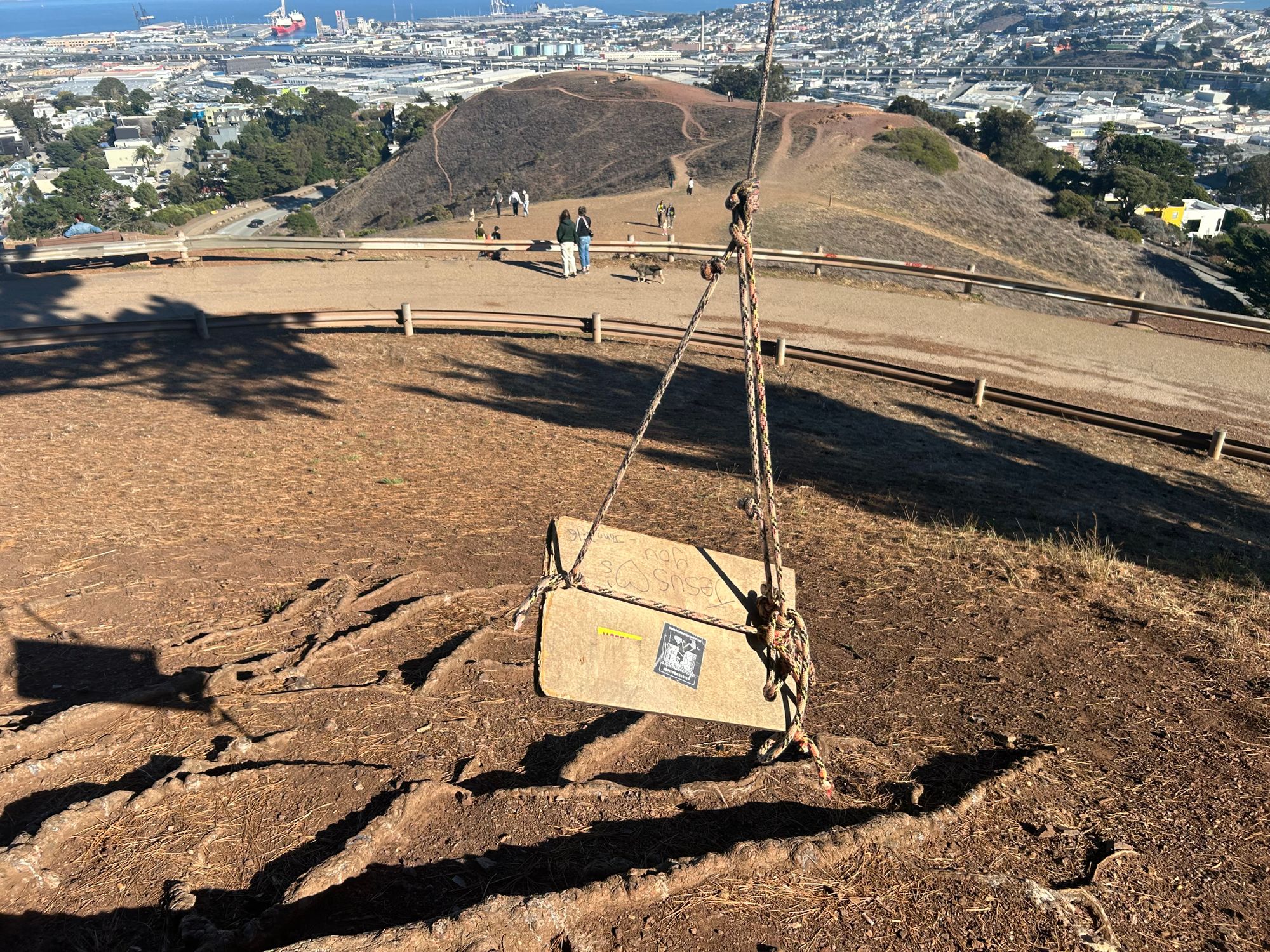 But SF City Hall agencies always take these swings down. In the case of the Bernal Hill swing, it’s SF Rec& Parks removing the swing, as that swing is located in a San Francisco park.