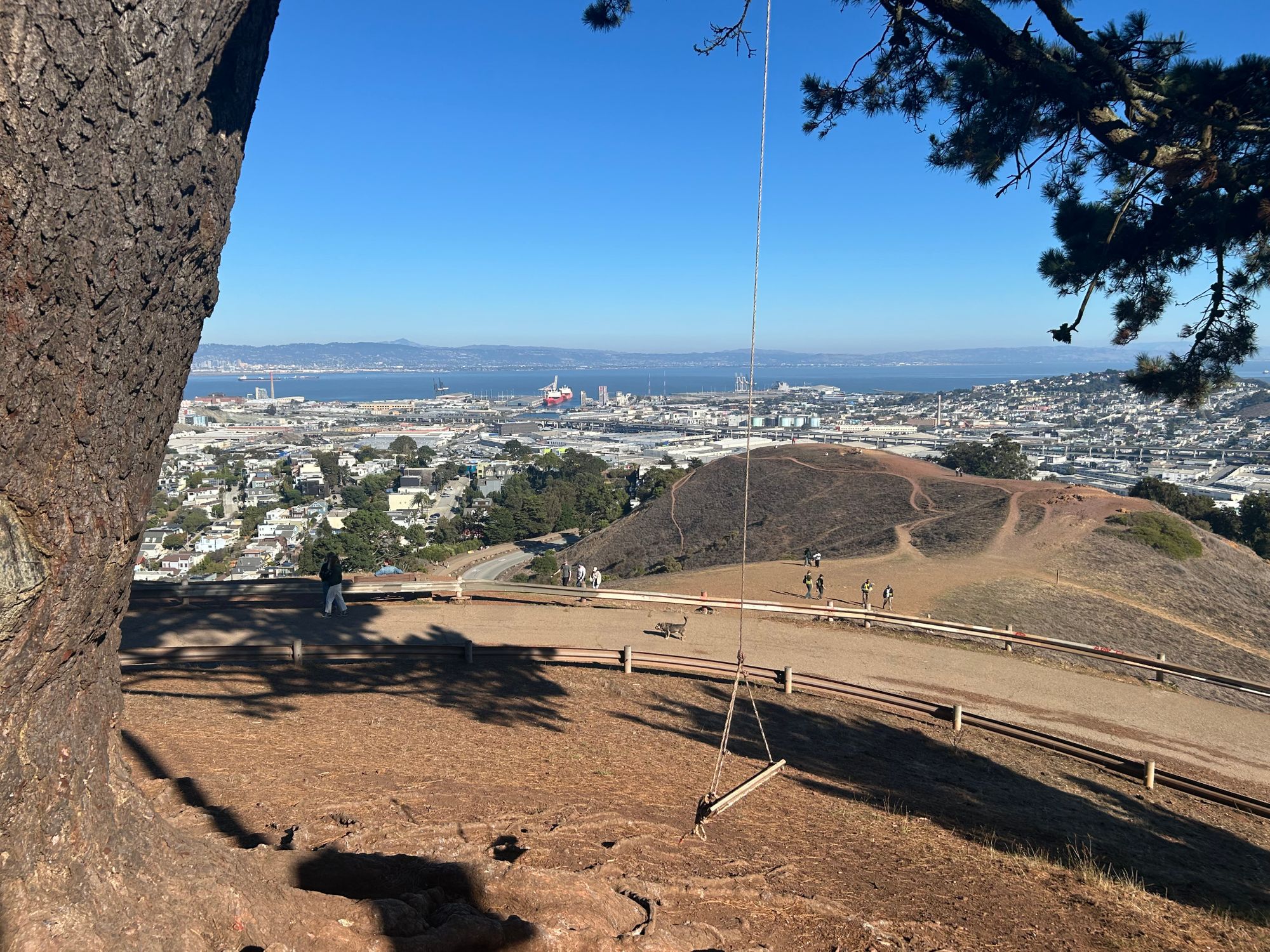 And the Bernal Hill Swing has been around for even longer than the Swing Guy, who says he only moved here a year and a half ago. Previous iterations of the swing were built and installed by other thrillseekers of yesteryear.