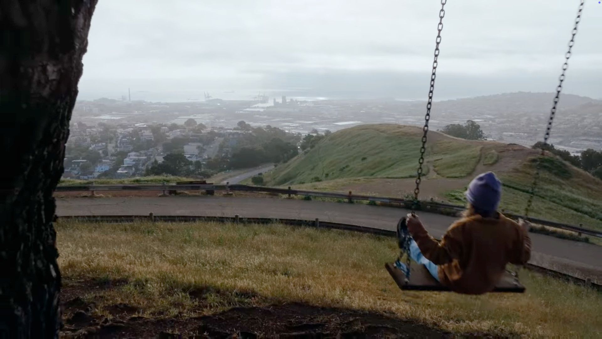 Amusingly, SF Travel did not even plan to put the swing in the ad. They were simply shooting footage from the summit of Bernal Heights Hill, and they came across the swing.