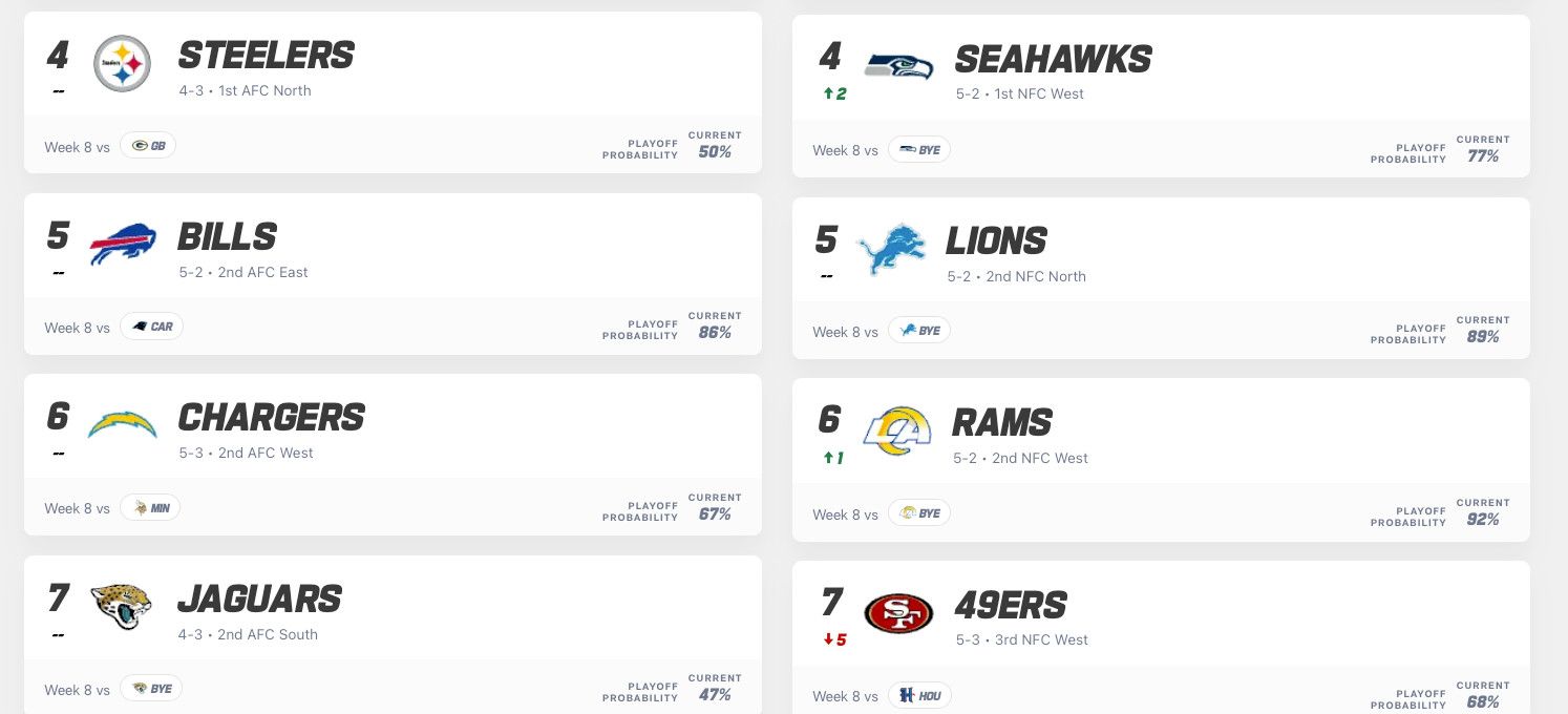 And hey, it’s that time of year when there’s already a playoff picture! If the season ended today, the Niners would still make the playoffs, albeit as the lowest-seeded Number 7 team in the NFC. So they are not on the outside looking in, or at least, not at this point they aren’t.