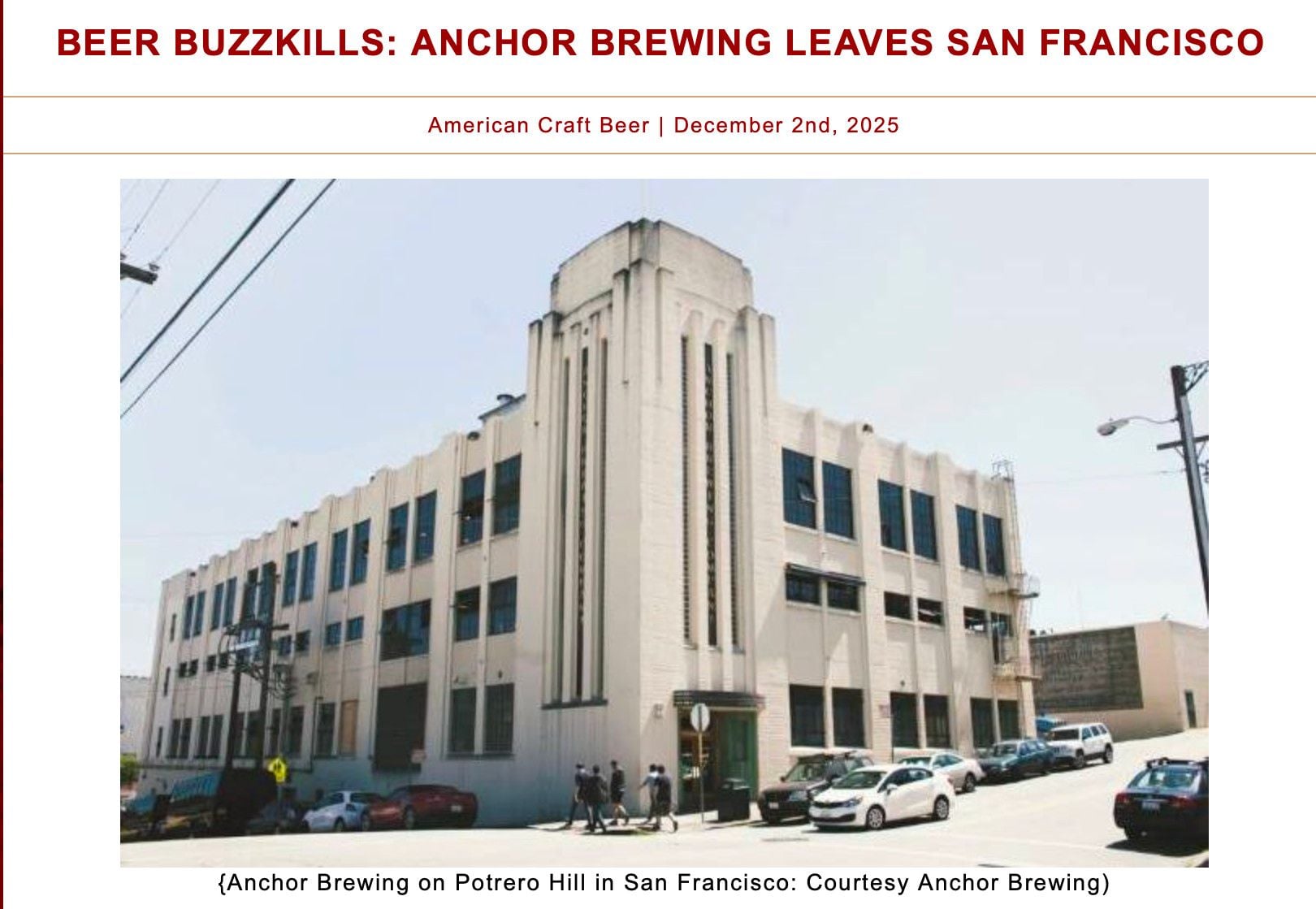 Beer Buzzkills: Anchor Brewing Leaves San Francisco https://t.co/HvkEtvMd6j #craftbeer pic.twitter.com/7sP4Q6Mx52