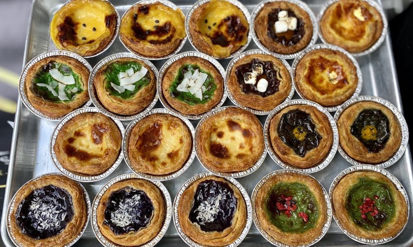 A&M Patisserie is a San Jose pop-up turning the familiar egg tart into a rotating cast of flavors, from yuzu and pistachio to honey garlic and corn cheese. Started during lockdown by Alice Ngo and Minh Pham, the operation has grown into a fixture at makers’ markets, where long lines form around a banner listing 18 variations at a time.