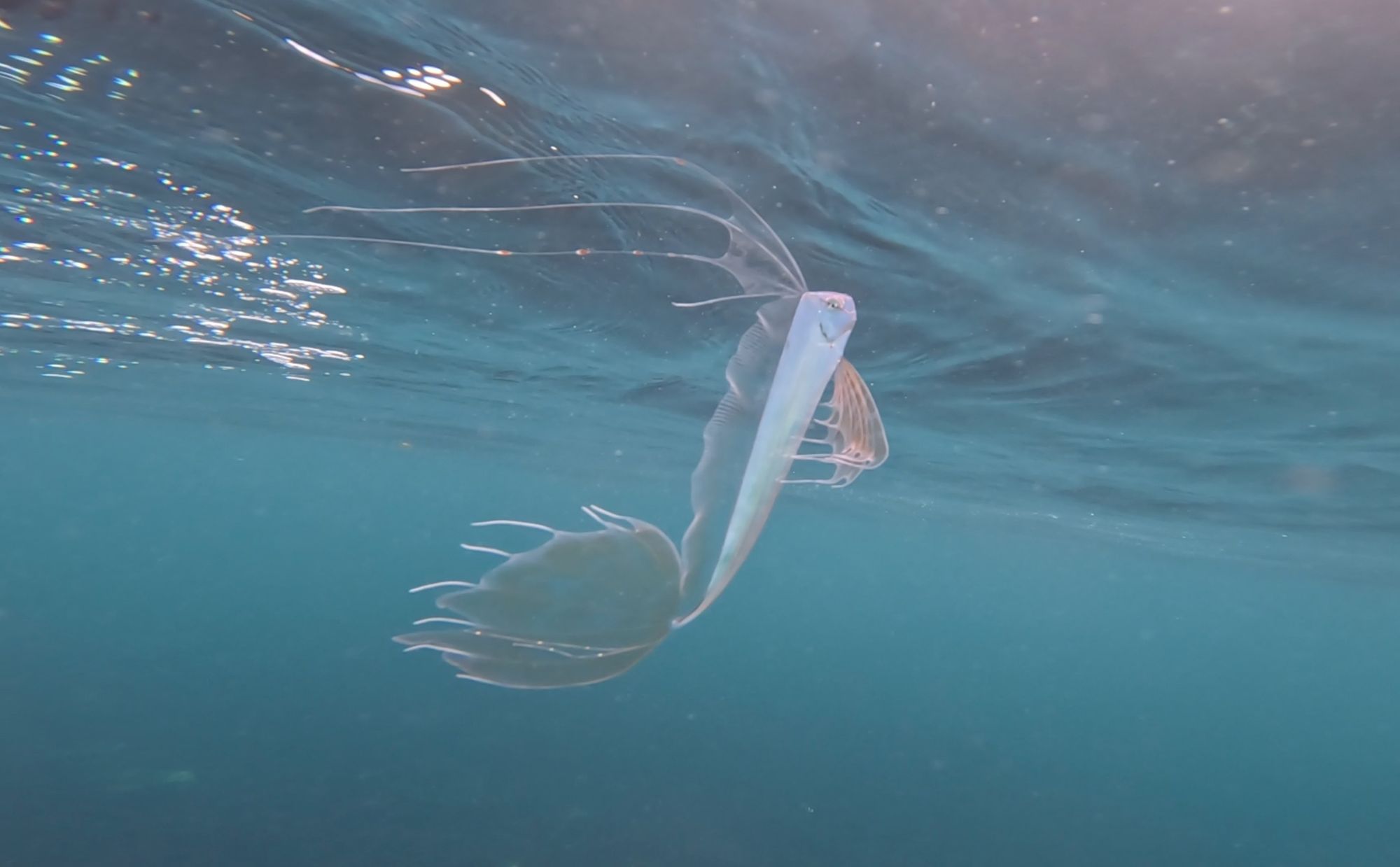 Fortunately for Judah, there were no harbingers of doom washing ashore this week — just a healthy juvenile ribbonfish partaking in some tasty fish larvae on a clear, sunny day while vibing with a strange-looking human creature.