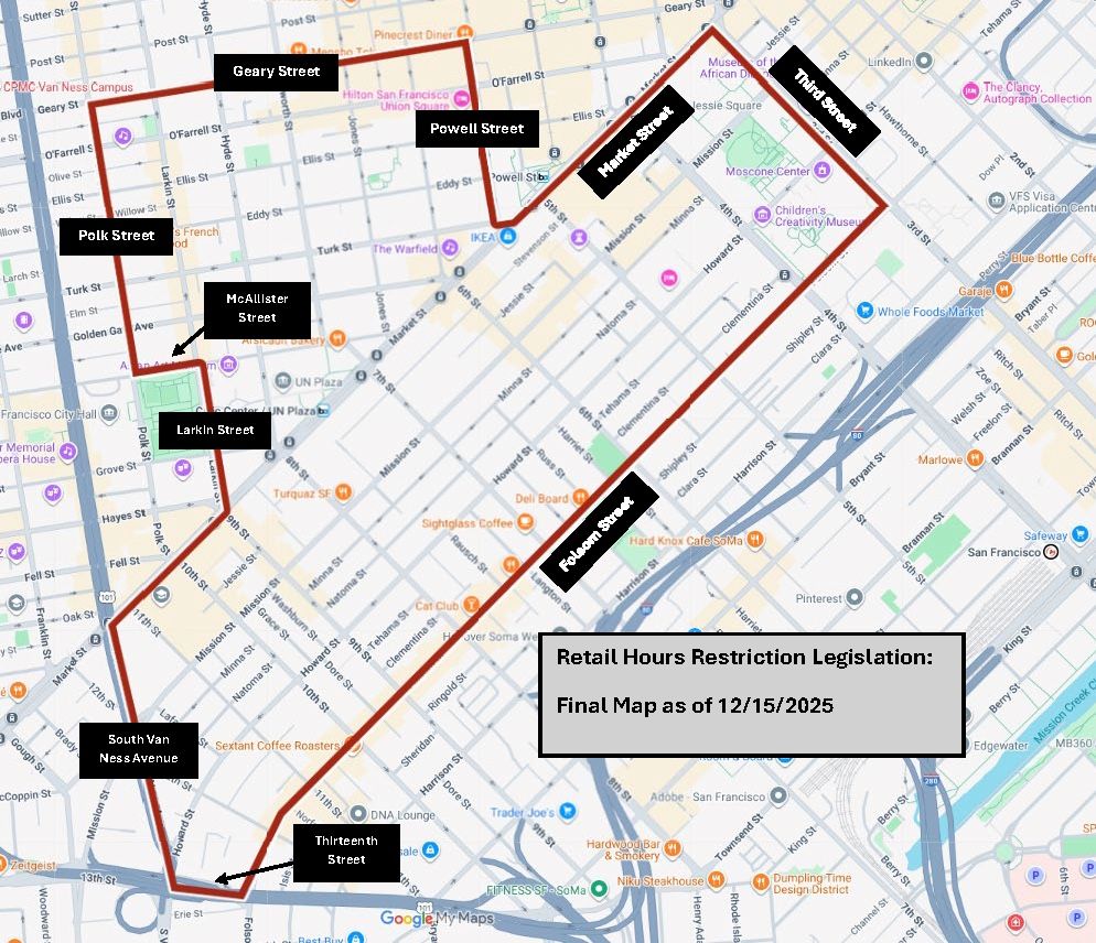 Back when London Breed was still mayor, her idea to clamp down on the notorious drug trade and nighttime street circus that pervaded the Tenderloin District was to shut down corner liquor stores earlier in parts of the Tenderloin, and prohibit them from doing business between midnight and 5 am. That proposal got passed into law in June 2024 (taking effect the following month), and liquor stores on this 20-block area of the Tenderloin are now forced to close at midnight. That law is a pilot program that will remain in effect until July 2026.