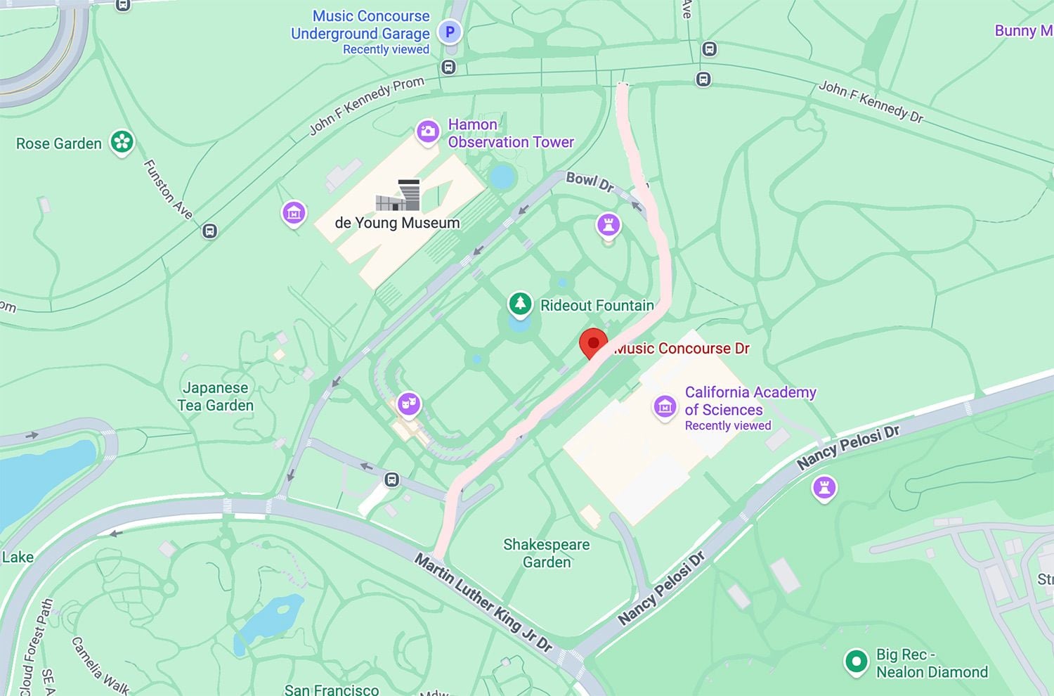 Melgar introduced a resolution to the Board of Supervisors about the street renaming in mid-December. At the time, there were seven other potential street possibilities, including theb much shorter, unnamed connecter street seen on the map above that runs between Music Concourse Drive and Hagiwara Tea Garden Drive, at the south end of the plaza.