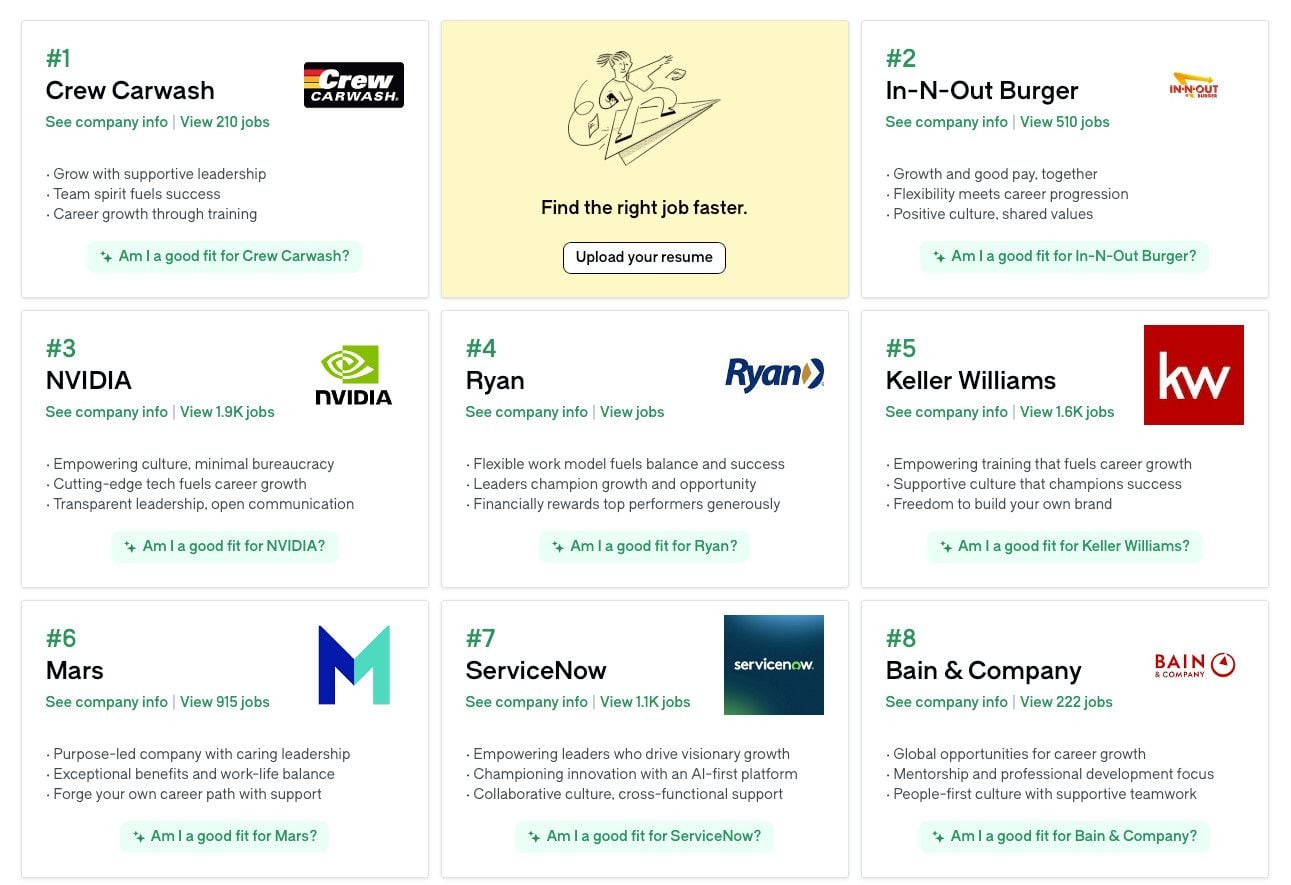 But In-N-Out is the top-ranked company that is based in California, and comes in at Number Two nationally, just ahead of Nvidia at Number Three nationally. And yes, Glassdoor knows they are ranking a burger joint ahead of the most lucrative tech companies on earth.