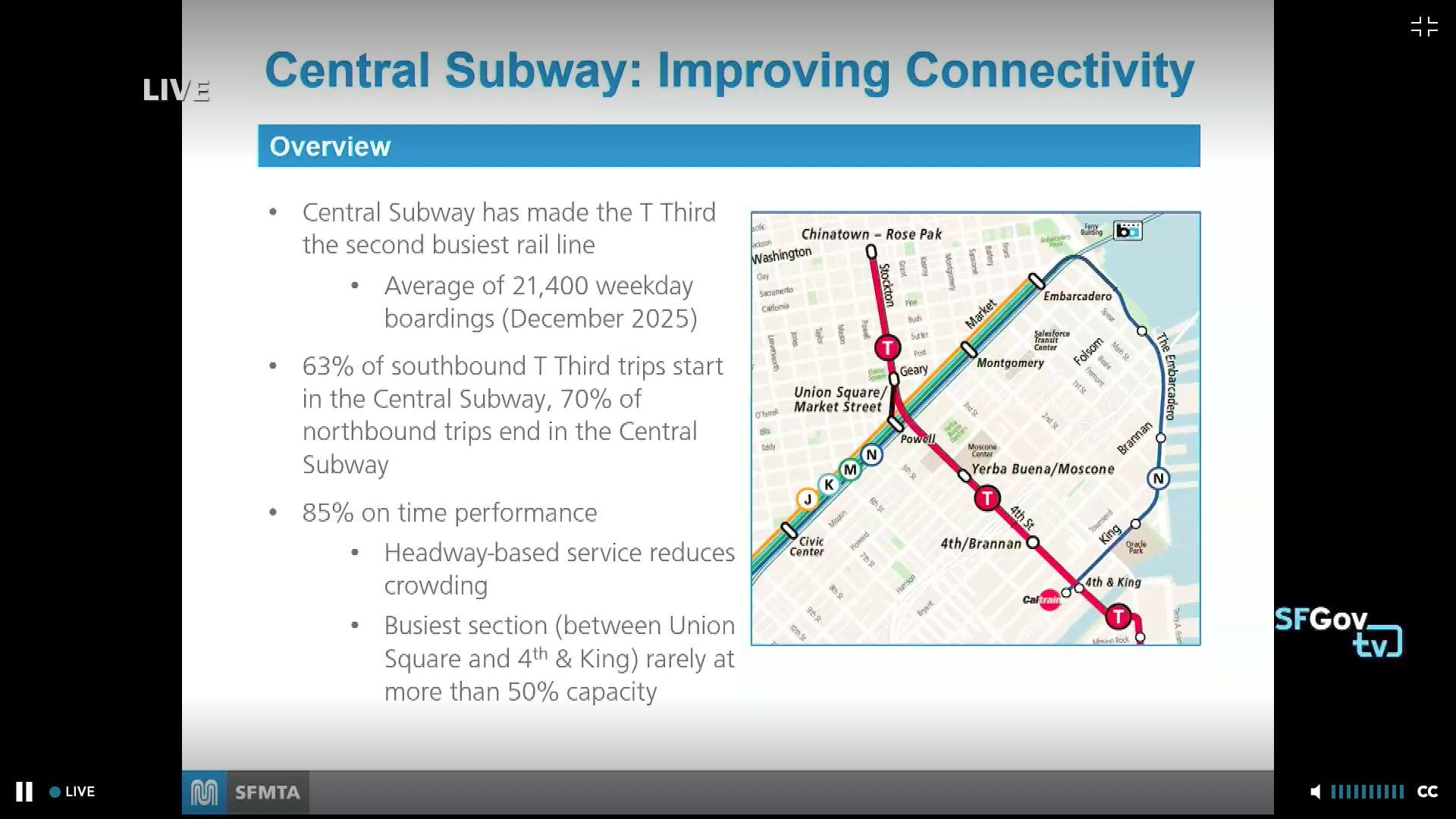 But these books might be slightly cooked. The T-Third line’s ridership numbers are surely inflated by Chase Center events. And we also see the footnote above that the "busiest section (between Union Square and 4th and King) [is] rarely at more than 50% capacity.”