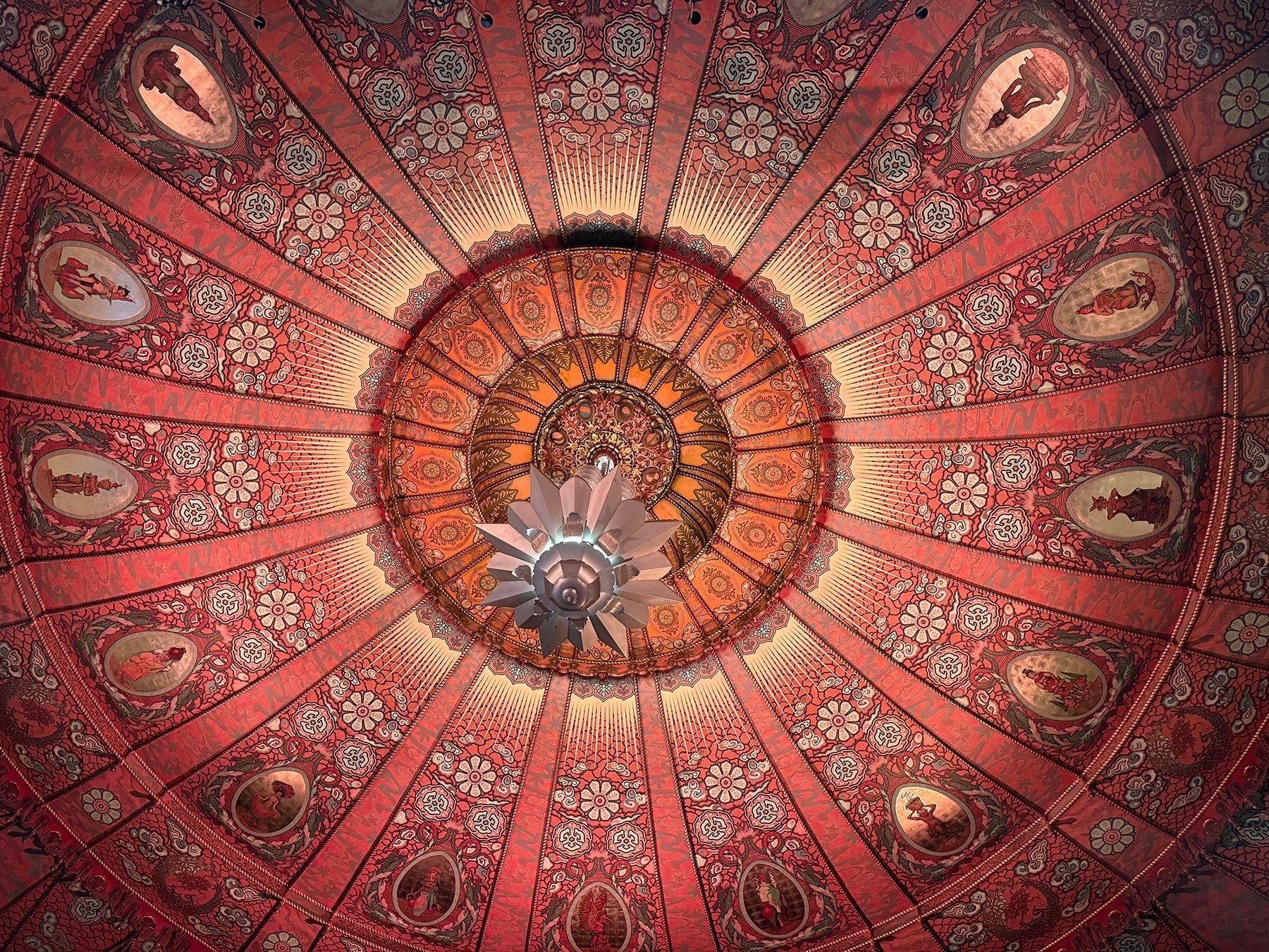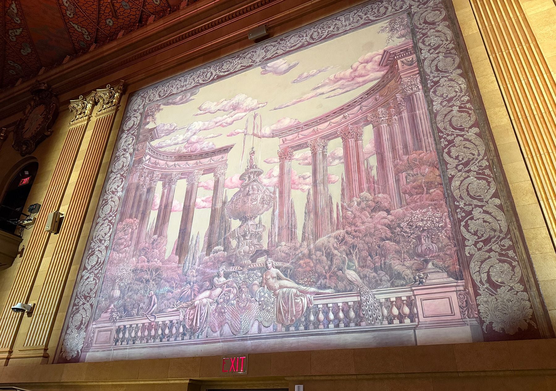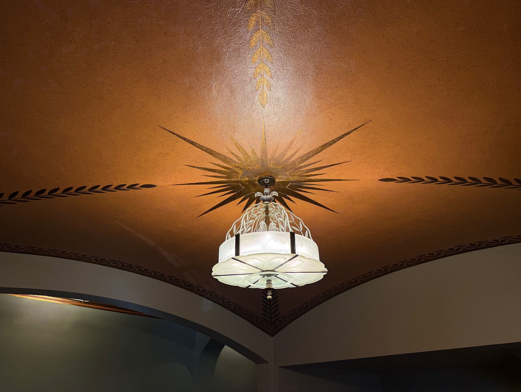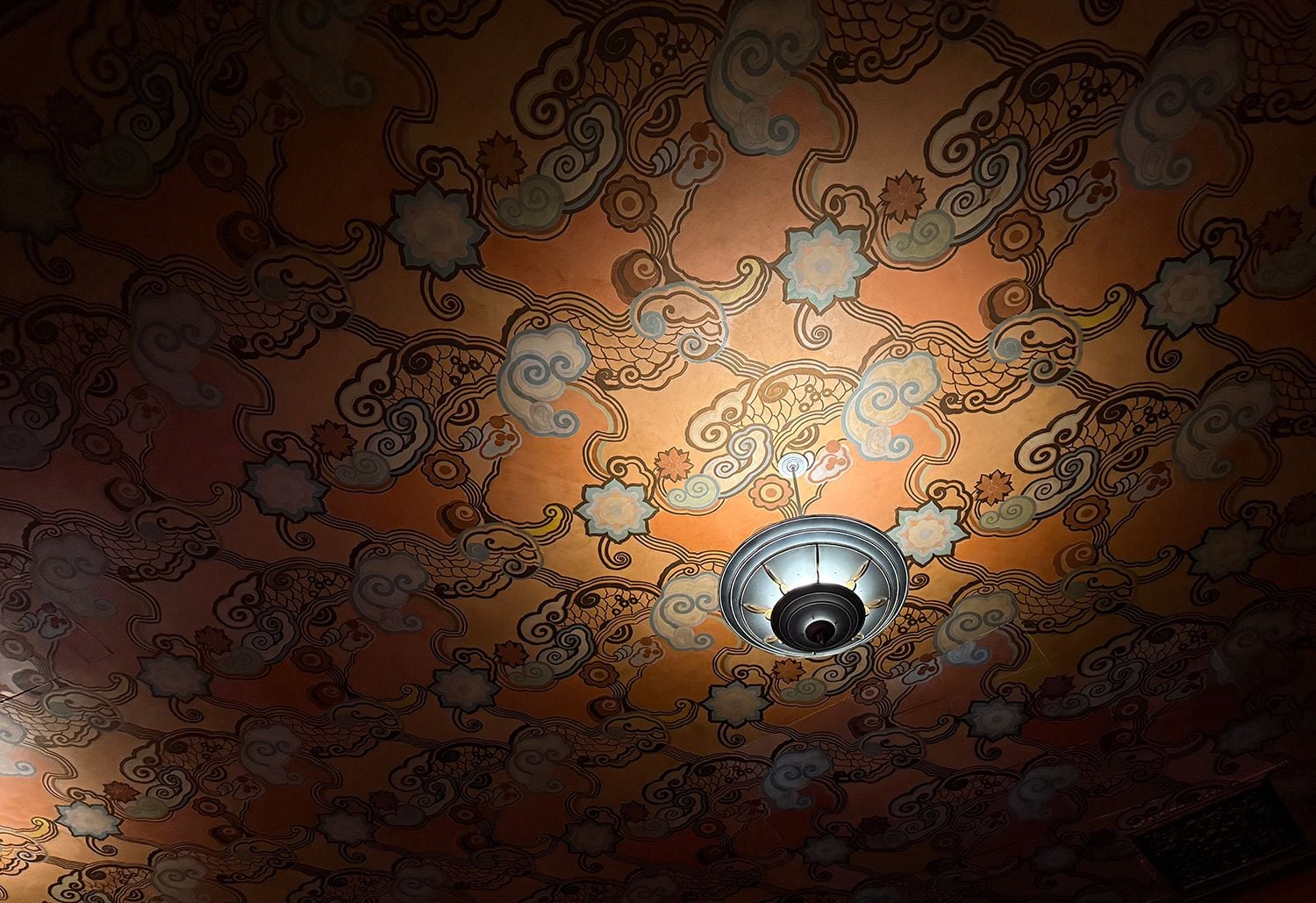 The glorious 1920s painted cupola only required cleaning, the team said, and not any touching up of paint, because it had sat "preserved in nicotine" for decades, given that smoking was allowed in the theater for over 60 years of its existence.
