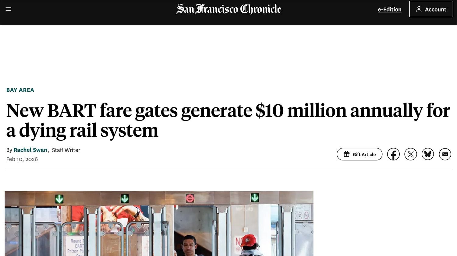 "New BART fare gates generate $10 million annually for a dying rail system."