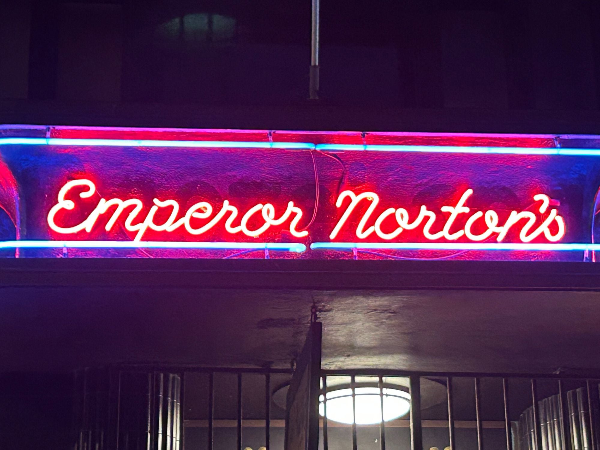 But the bar has recently upgraded its façade and marquee with a new (and pricey) custom neon displays that lights up Larkin Street, with the words “Emperor Norton’s” actually based on Emperor Norton’s real signature.”
