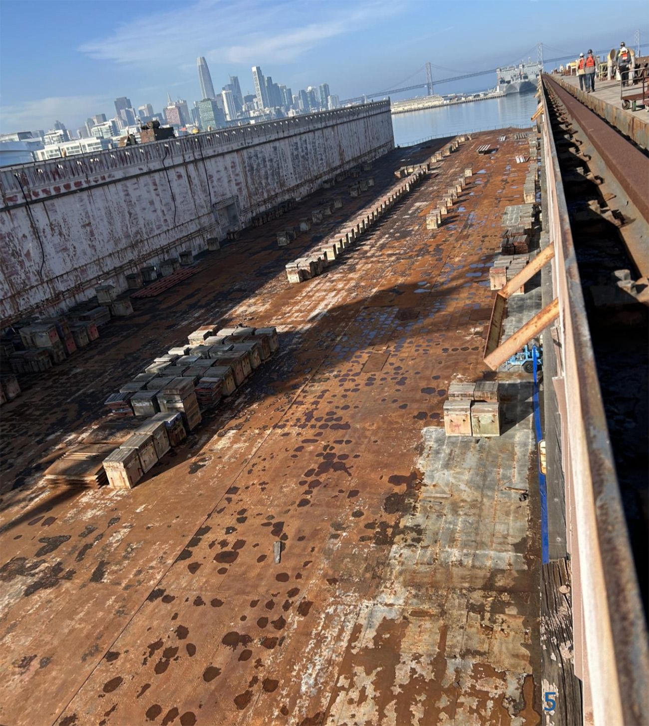 Still, we would all have to deal with the environmental ramifications if the dock were to sink. Longtime Bay Area residents will recall the dicey situation that arose in 2002 when the rusted out Dry Dock #1 came loose from its moorings in a storm and floated across the Bay, bumping into Yerba Buena Island. Thankfully, it did not sink, and was just towed back and demolished.