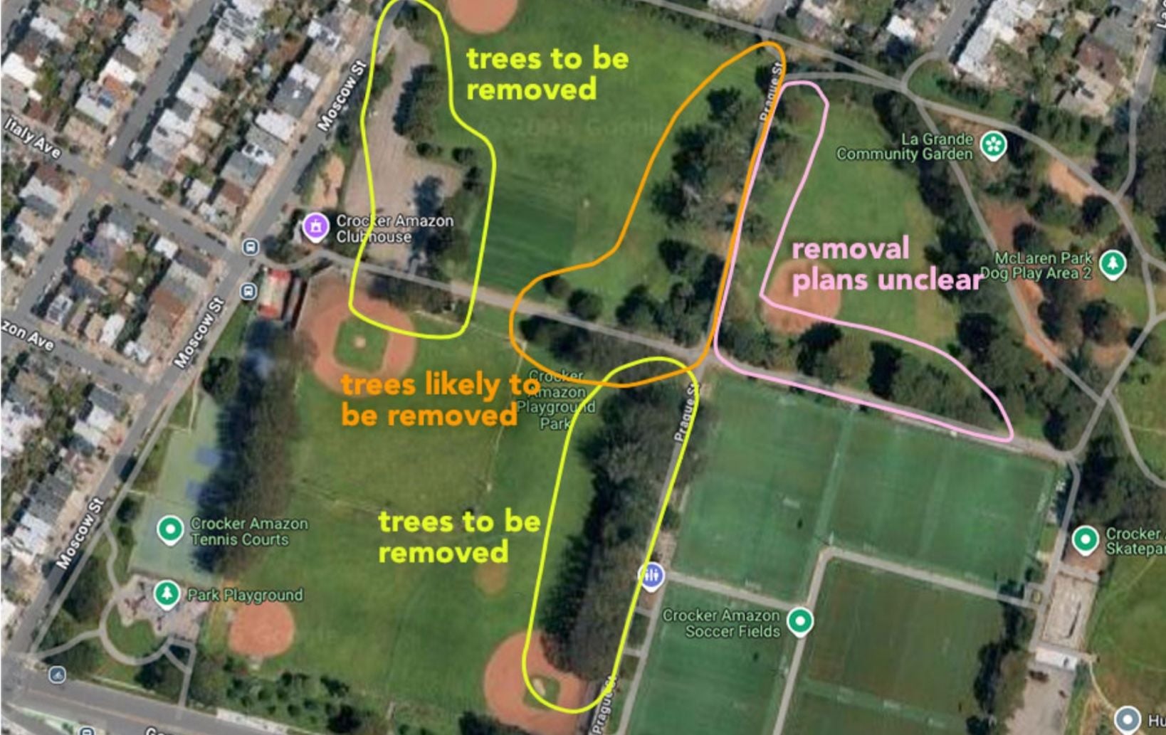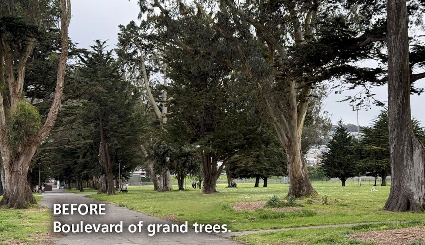 Per Keep Crocker Real’s website, the proposed plan is being “framed as a ‘gift,’” from the Giants. “However, many neighbors did not ask for this project and do not support paving over meadows, cutting down mature trees, and fencing off large portions of a beloved community park,” says the group.