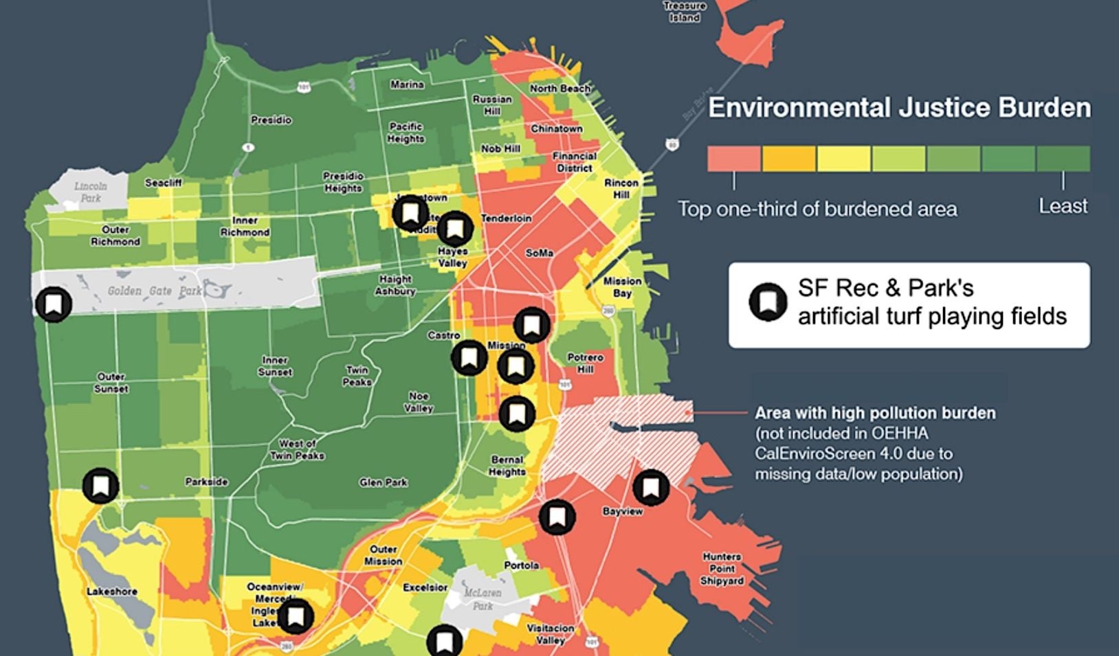 In defense of the project, city officials explained, per the Chronicle that synthetic turf allows sports fields to handle far more hours of play with less downtime, and note the proposed fields at Crocker Amazon Park would use cork-and-sand infill rather than the crumb rubber made from recycled tires used in older turf systems.
