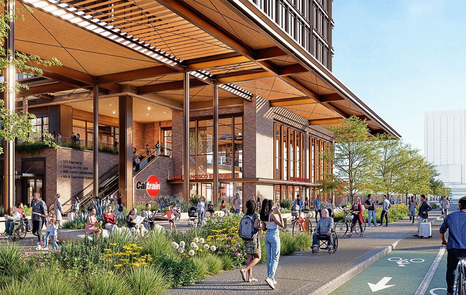A component of the eventual development would be moving Caltrain's tracks underground — and with that comes a connection to the still unfunded Portal project, formerly DTX or the downtown underground extension of the tracks that will ultimately bring them, and the still hypothetical high-speed rail, under Second Street and into Salesforce Transit Center, where an underground concrete box awaits their arrival.