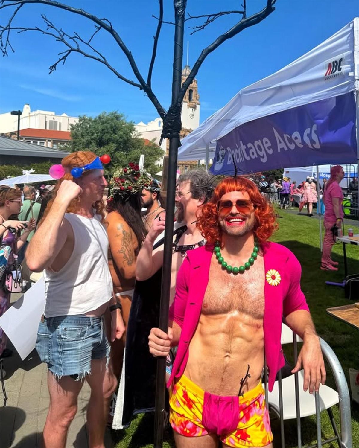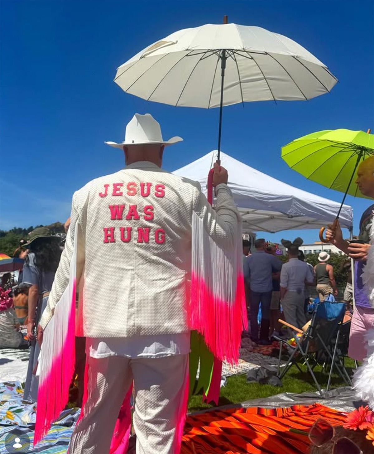 Sister Roma and Peaches Christ once again presided over the festivities from the stage, and this year's entrants included Cheezits Christ — complete with a large cross made from Cheez-Its boxes — Oil on Canvas Jesus, Elvis Jesus, Fitness Jesus, Trans Jesus, Aunt Gladys Jesus, Palestinian Balloon Jesus, and a Cow Jesus whose udders dispensed cocktails.