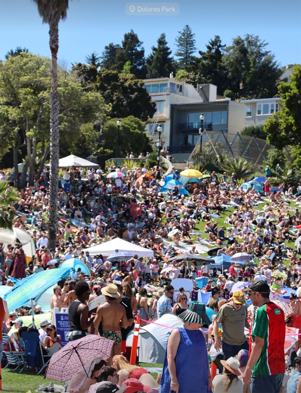What was once a small and mostly LGBTQ gathering at the southern end of Dolores Park, hosted by the Sisters of Perpetual Indulgence, featuring an Easter Bonnet contest and the gleefully sacreligious Hunky Jesus Contest, has grown into a massive annual affair, attended by thousands.