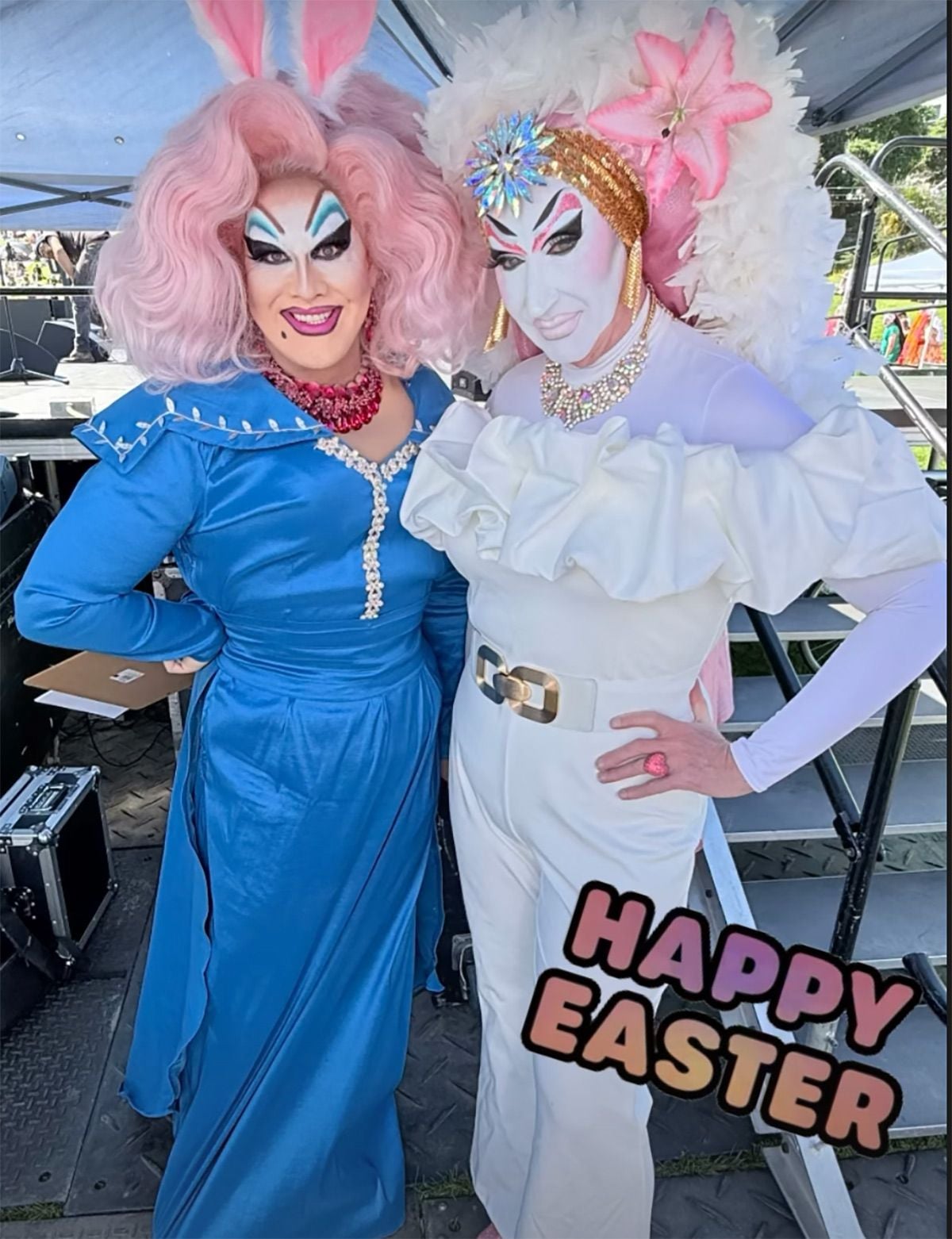 It was a warm and sunny Easter Sunday in San Francisco, and once again the northern half of Dolores Park was elbow-to-elbow and blanket-to-blanket with spectators for the annual Hunky Jesus and Foxy Mary contests.