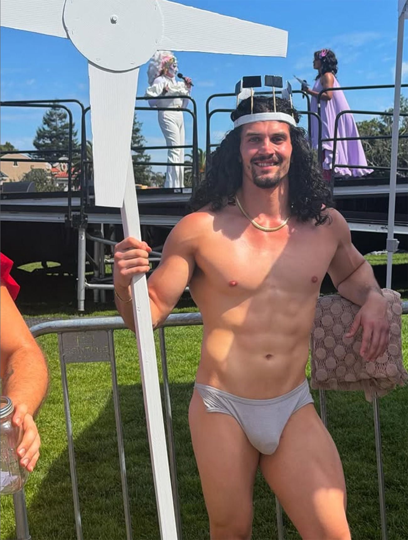 It is often the case that the hunkiest Jesus with the most revealing loin cloth gets the loudest cheers and takes the prize at the annual Hunky Jesus Contest on Easter Sunday. And this year was no exception. with Miguel Velez winning out with his Renewable Enegery Jesus, complete with a crown of solar panels and a windmill staff.